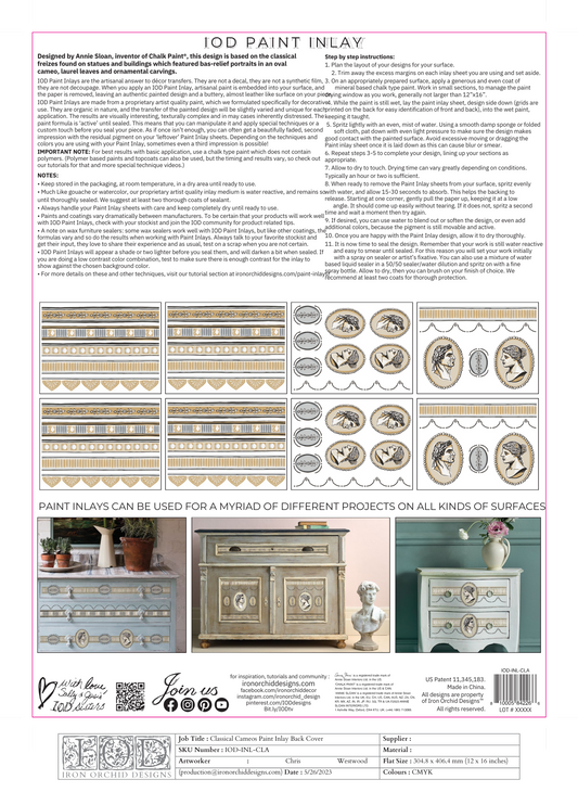 Classical Cameo 12x16" Paint Inlay Designed by Annie Sloan EIGHT Sheet Set by Iron Orchid Designs (IOD)